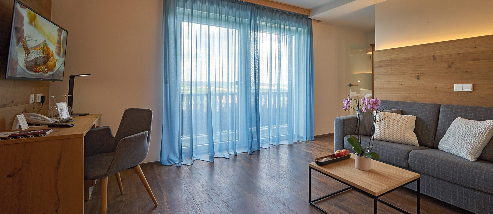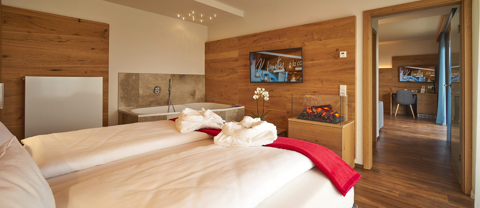 Unser neugestaltetes Studio Cox Pomona ist ausgestattet mit: Getrenntem Wohn- und Schlafbereich, Eingangsbereich mit Garderobe, Elektrokamin, freistehender Badewanne im Wohnbereich, separates WC, Föhn, Doppelwaschbecken, Kosmetikspiegel, Sat -TV im Wohnbereich sowie im Schlafzimmer, Telefon, WLAN, Minibar, Zimmersafe, Leihbademantel, Balkon zur Südseite, Boxspringbett 1,80m x 2,00m