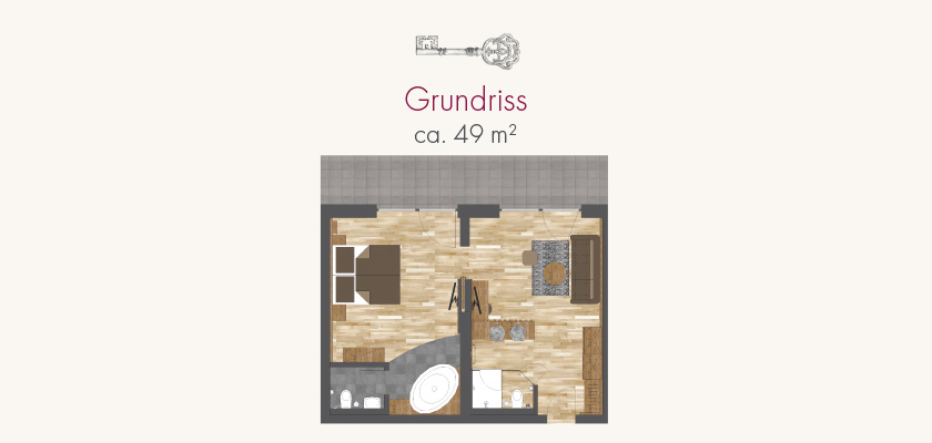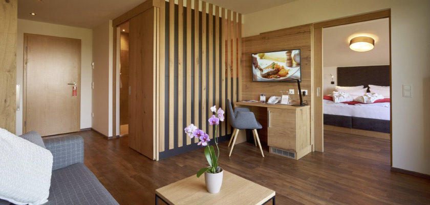 Unser neugestaltetes Studio Golden Delicious ist ausgestattet mit: Getrenntem Wohn- und Schlafbereich, Eingangsbereich mit Garderobe, Elektrokamin, freistehender Badewanne im Schlafzimmer, separates WC, Föhn, Doppelwaschbecken, Kosmetikspiegel, Sat -TV im Wohnbereich sowie im Schlafzimmer, Telefon, WLAN, Minibar, Zimmersafe, Leihbademantel, Balkon zur Südseite, Boxspringbett 1,80m x 2,00m