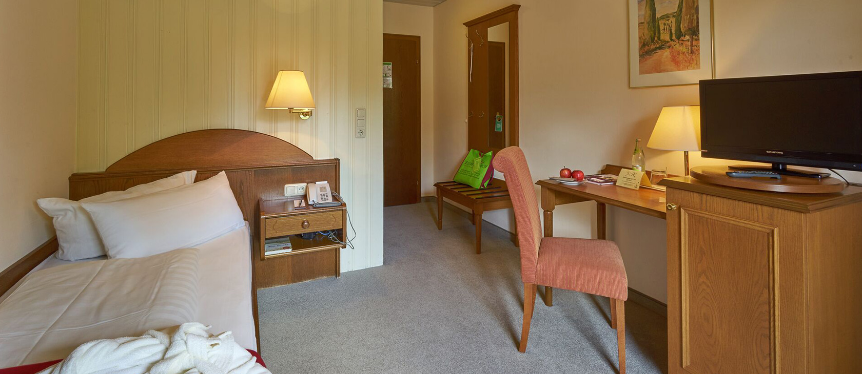 Unsere Standard Zimmer sind ausgestattet mit: Dusche, WC, Föhn, Sat -TV, Telefon, WLAN, Leihbademantel, Balkon zur Süd-, Nord- oder Ostseite, Bettengröße 1,80m x 2,00m (Einzelzimmer 0,90m x 2,00m), alle Betten haben ein Fußteil verbaut